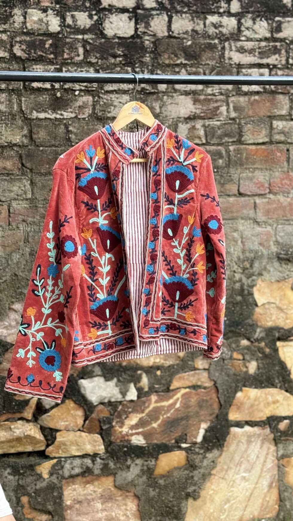 Luxurious velvet jacket featuring intricate Suzani embroidery. Perfect blend of elegance and tradition — ideal for festive and ethnic occasions.